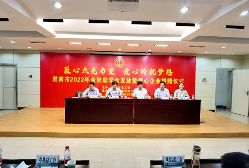 8月29日下午,“匠心点亮希望 爱心铸就梦想”——淮南市2022年金秋助学金发放暨爱心企业捐赠仪式在国网淮南供电公司举行。市总工会党组书记、副主席梁广贤,国网淮南供电公司纪委书记、工会主席王鼎鼎及市总工会党组成员、副主席魏洪伟等领导参加,参加会议的还有受资助学生及家长代表、各县区工会人员等40余人。