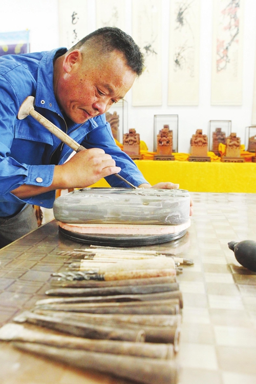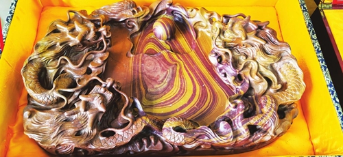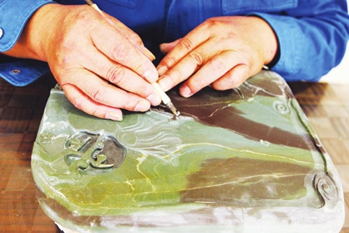 邱金保的人生轨迹颇具传奇色彩,他曾是一名普通矿工,受喜爱紫金石舅舅的影响,毅然跨界投身紫金砚制作。潜心钻研下,他熟练掌握了从采石到成砚的二十多道工序,尤其精通浮雕、透雕等复杂技法。他的作品兼具天然石韵与人文意趣,屡获大奖,部分精品更是被选送国家博物馆展出,代表了当代紫金砚制作的高超水平。