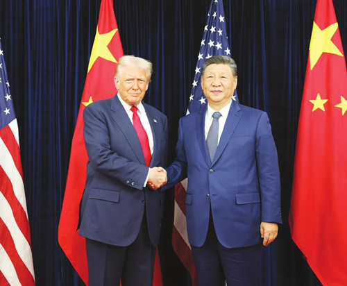 当地时间10月30日,国家主席习近平在釜山同美国总统特朗普举行会晤。