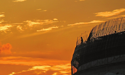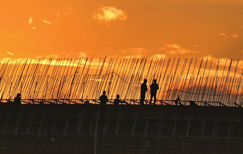 在城市的建筑工地,塔吊的巨臂在澄澈的天空下缓缓转动。建筑工人们戴着安全帽,在脚手架上忙碌穿梭。他们的衣衫被汗水浸透,又被干爽的秋风一遍遍吹干。趁着这宜人的天气,他们为这座城市的天际线添砖加瓦。