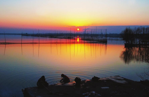 城外的淮河岸边,景象则是另一番宁静与古朴。渔民们驾着渔船驶向河心,金色的阳光洒在波光粼粼的水面上,也洒在他们黝黑的脸庞上,渔网入水的瞬间,承载着他们对丰收的期盼。