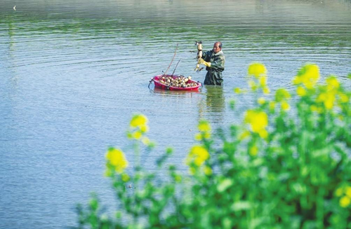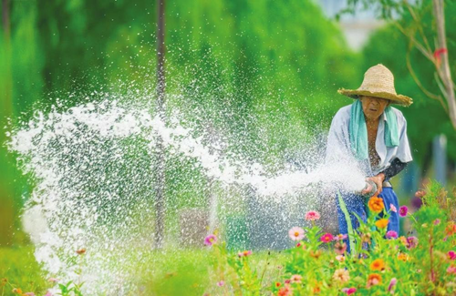 藕塘里,挖藕人穿着防水服跪行淤泥,水枪冲散泥层,小心翼翼抽出完整白藕,串串收获浮出水面;花圃中,花匠持壶斜洒,细流润透秋花枝桠,水珠沾叶映出天光;质检台前,质检员执物细查,指尖抚过接缝,报表上精准标注每处细节;车间里,工人双手节律翻飞,零件在流水线上有序衔接;养殖场内,养殖户推着秸秆饲料车,均匀撒入料槽,牛群低头抢食,他俯身清理牛栏。每份专注劳作,都在晴秋里沉淀成生活的回甘。