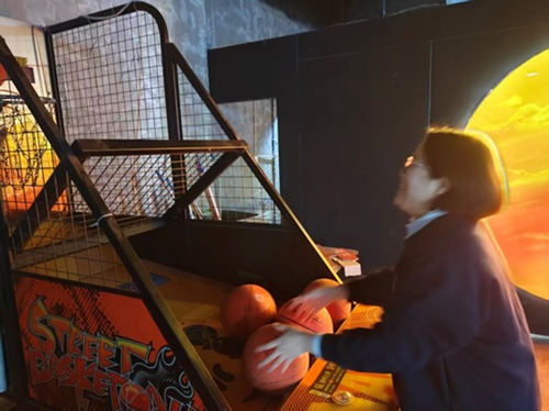 活动现场气氛热烈。在赛车游戏比赛中,每位赛手都全神贯注,两只手紧握方向盘,把谈客户攒的劲儿全踩进油门;手工桌前,专注度堪比改方案的深夜;保龄球道上的利落一掷、台球桌旁的俯身瞄准,把季度目标的紧绷感,换成了“球进了”的雀跃。连投篮机前都挤满了人,篮球碰撞篮筐的声响里,裹着此起彼伏的笑。圆桌前,大家围坐在一起,一边分享着美味的小零食,一边谈论着工作和生活中的点点滴滴,交流经验、互送祝福,现场氛围温暖而感人。