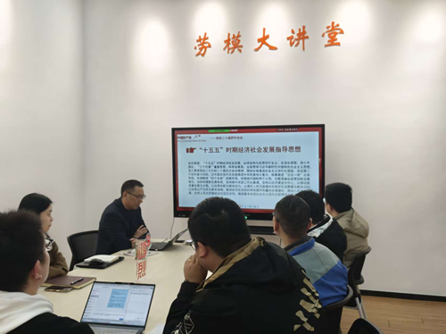 本期大讲堂特邀安徽省劳动模范、市场经营部经理冯浩同志担任主讲人。冯浩同志对党的二十届四中全会精神进行宣贯,详细对“十五五”时期经济社会发展指导思想,“十五五”时期经济社会发展原则及全会提出的“以改革创新为根本动力”“推动高质量发展”做了解读。
