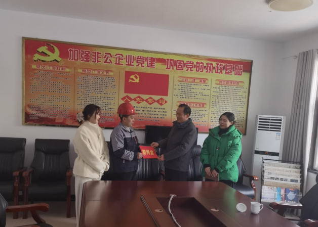 1月21日,八公山区政协副主席、区工会主席彭华玉带队前往安徽新长淮科技有限公司,开展企业调研走访与劳模慰问活动,深入了解企业发展情况,指导劳模创新工作室建设,并为市级劳模朱永臣送上组织关怀。