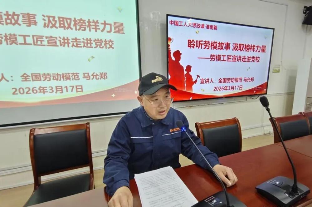3月17日上午,大通区工会举办“中国工人大思政课·淮南篇——聆听劳模故事 汲取榜样力量”劳模工匠宣讲进党校活动。全国劳动模范、安徽唐兴装备科技股份有限公司工艺品质部总工艺师马允郑受邀授课,以“向下扎根、向上攀登、向后传承”为主题,分享了自己二十余载扎根技术一线的奋斗历程。