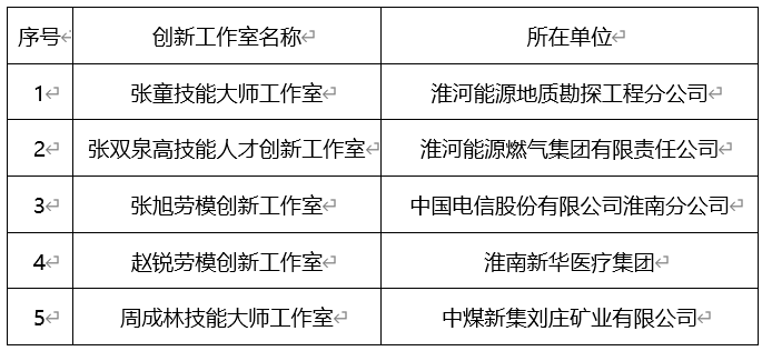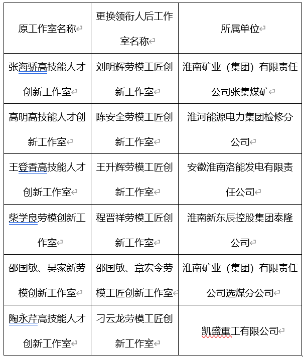 第十批淮南市劳模工匠创新工作室拟认定名单