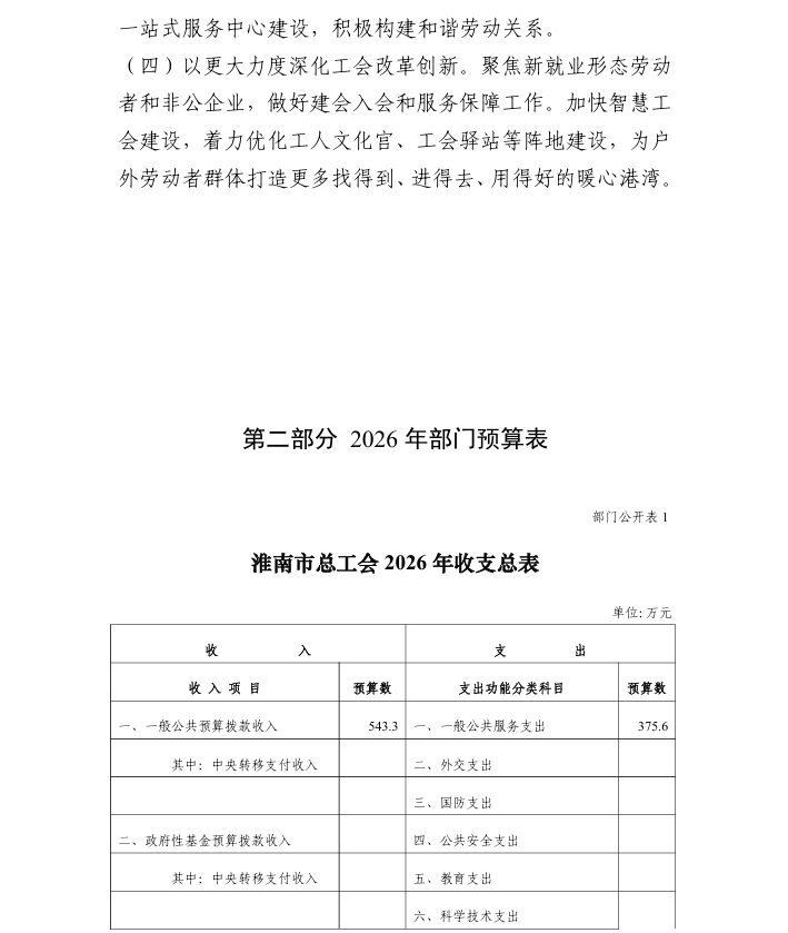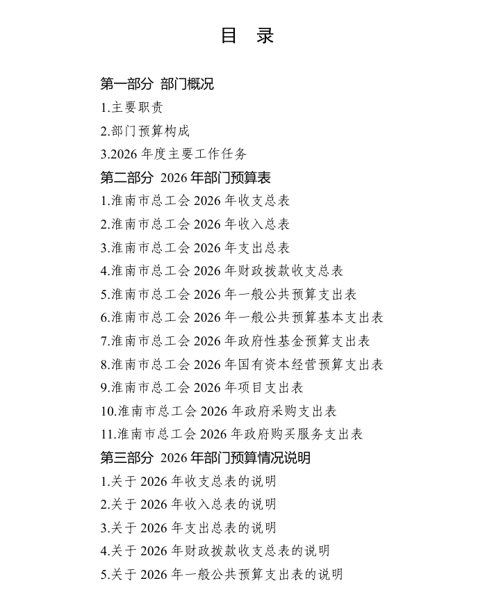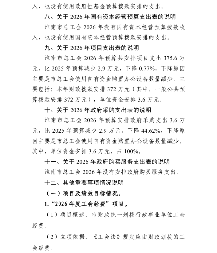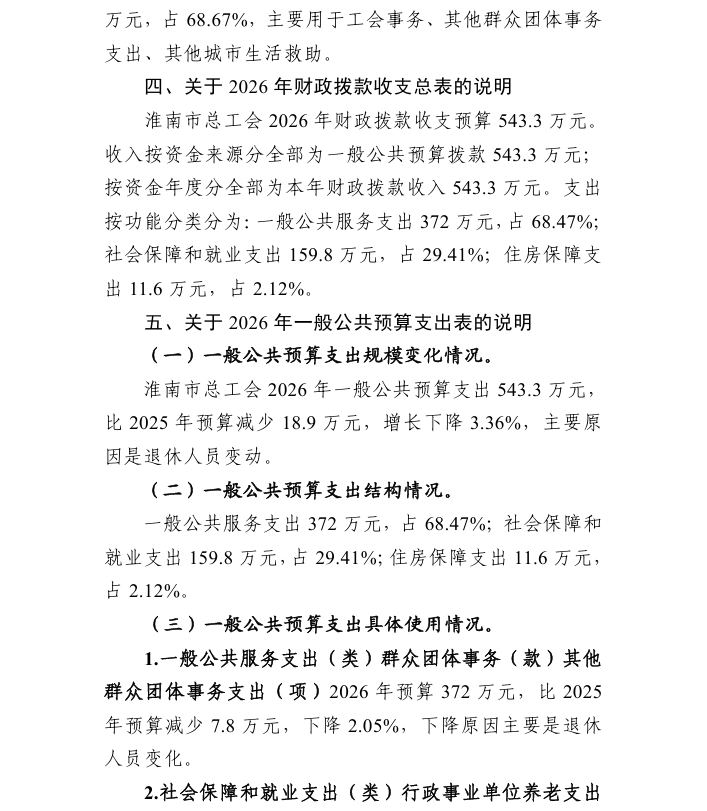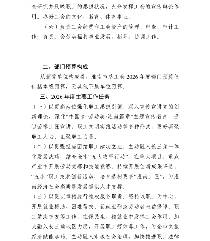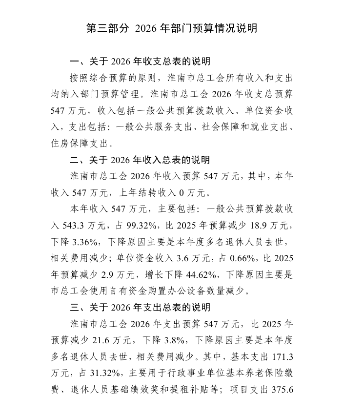 淮南市总工会 2026 年部门预算