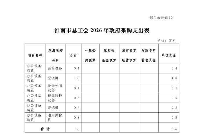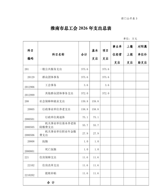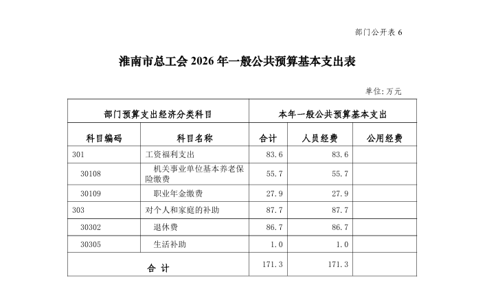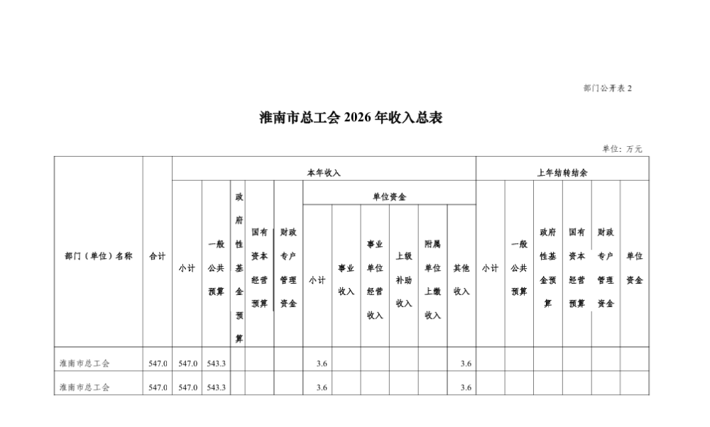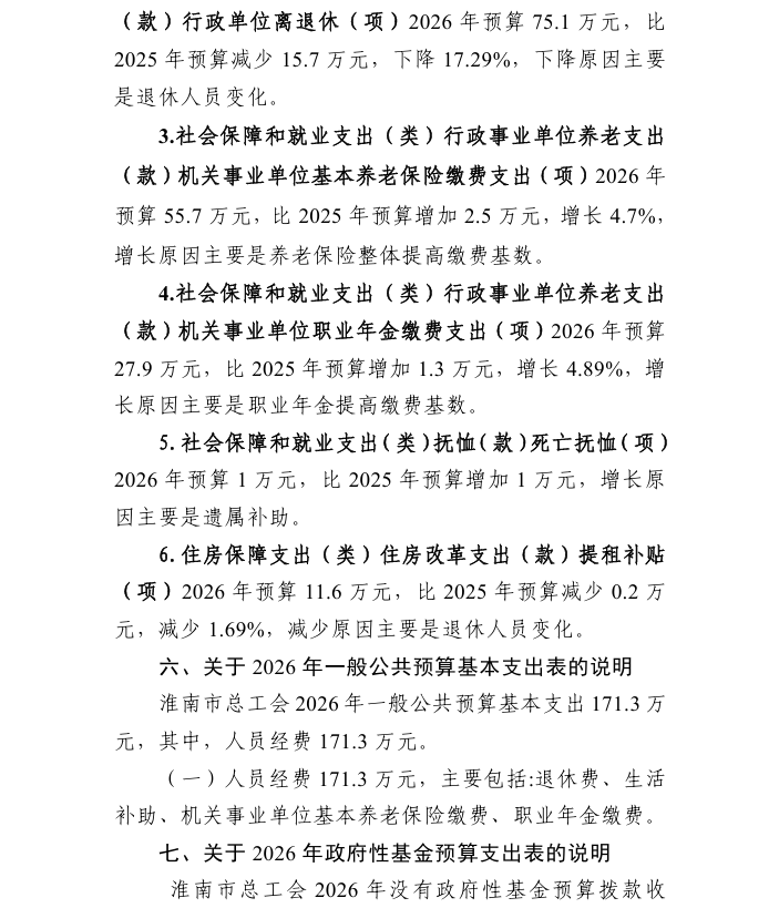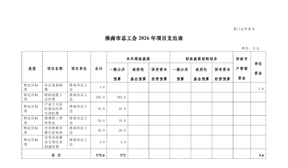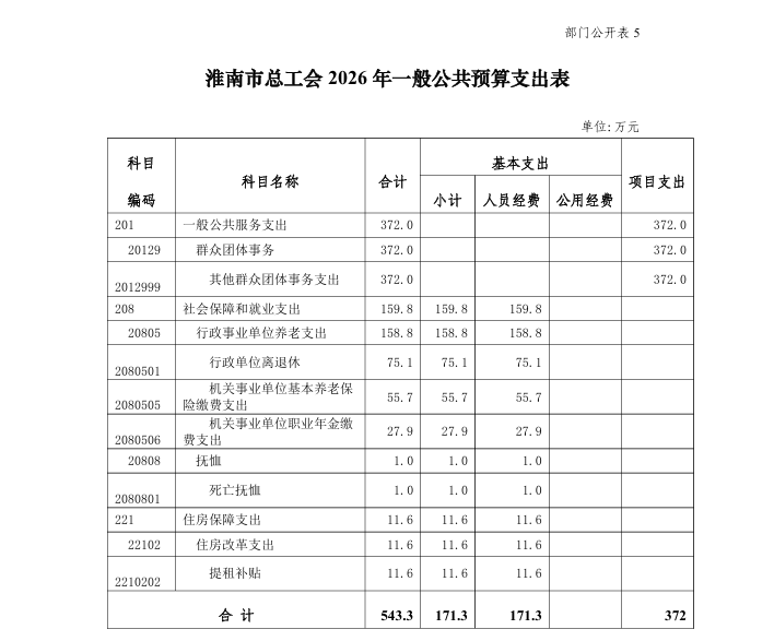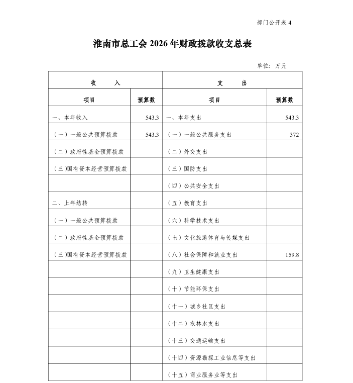 淮南市总工会 2026 年部门预算