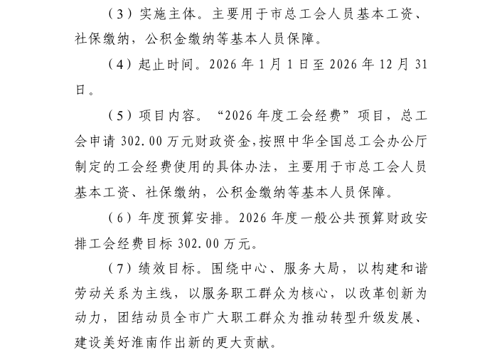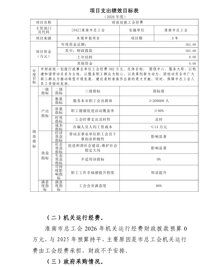附件:淮南市总工会2026年度项目支出绩效目标.pdf